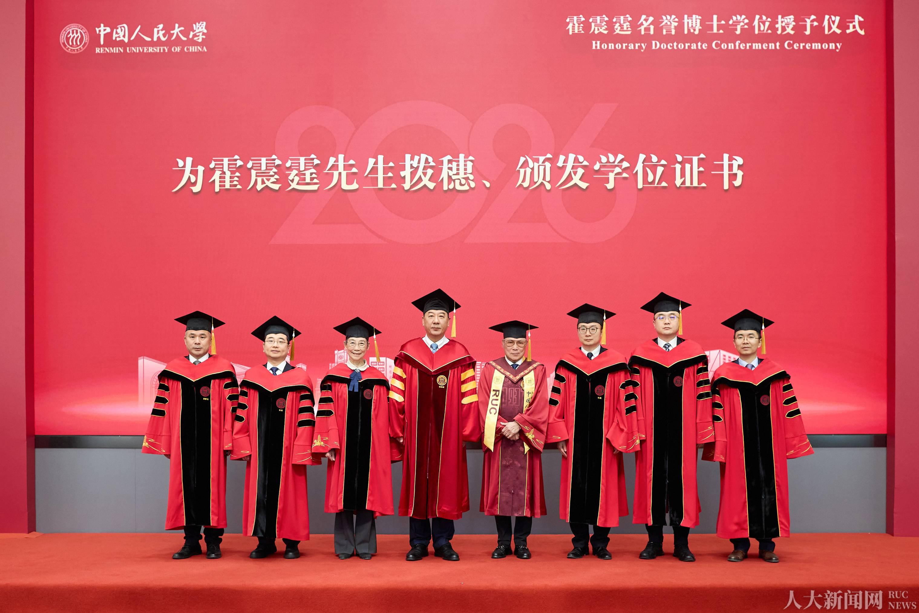 中國人民大學黨委書記 張東剛先生為 霍震霆會長撥穗、頒發學位證書。