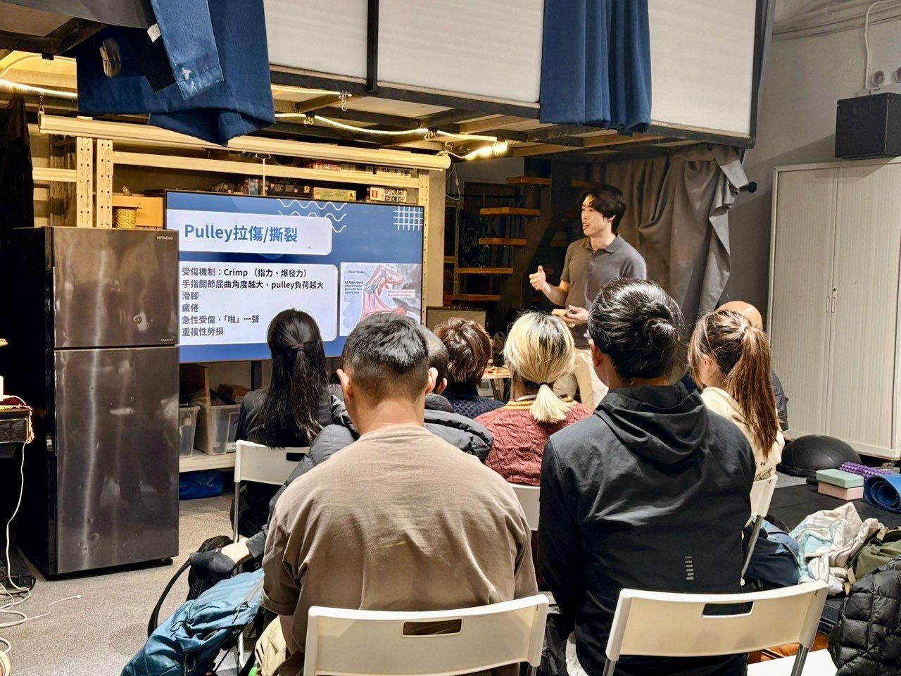 活動特別邀請註冊物理治療師李湛軒(Keith Lee)分享專業經驗,深入剖析攀岩傷患的成因,並介紹多種復健與放鬆的物理治療方法。所謂預防重於治療,Keith亦提供預防攀岩傷患的實用知識,降低訓練時受傷的風險。現場氣氛熱烈,教練及助教踴躍交流,活動取得圓滿成功!感謝Keith的專業分享,讓大家對攀岩傷患的預防與康復有更深入了解。 攀岩委員會將持續推動更全面的培訓,為攀岩界建立更為堅實的專業基礎。